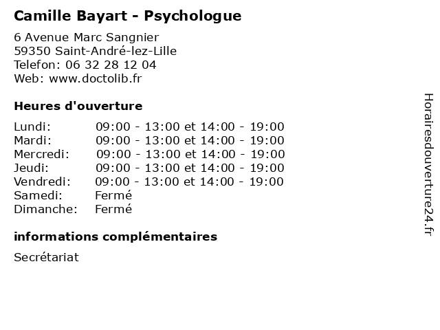 | Mardi | 09:00-13:00 et 14:00-19:00 |