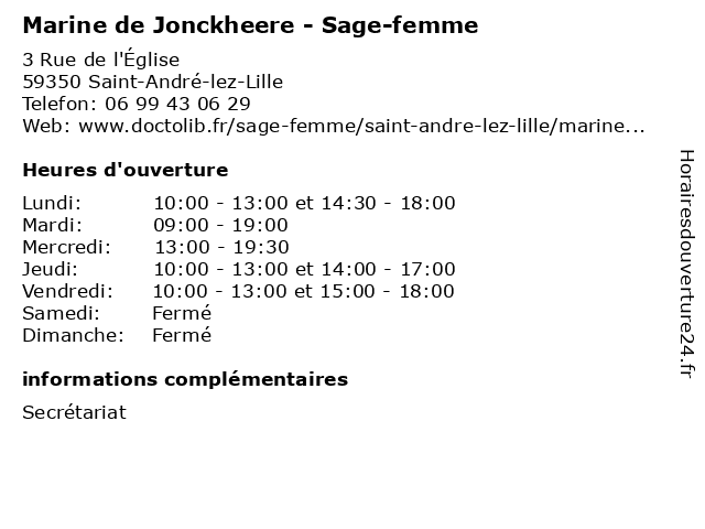| Vendredi | 10:00-13:00 et 15:00-18:00 |