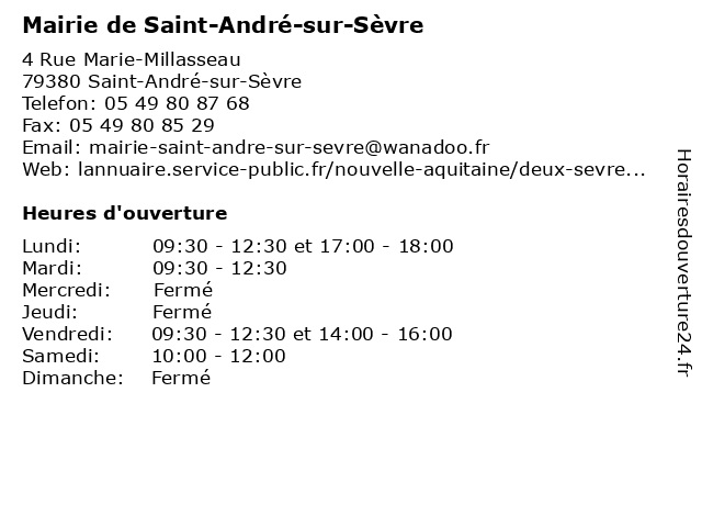Termes de recherche pour Mairie de Saint-André-sur-Sèvre:sur, de, saint, andre, administration, mairie, sèvre, assoc public |