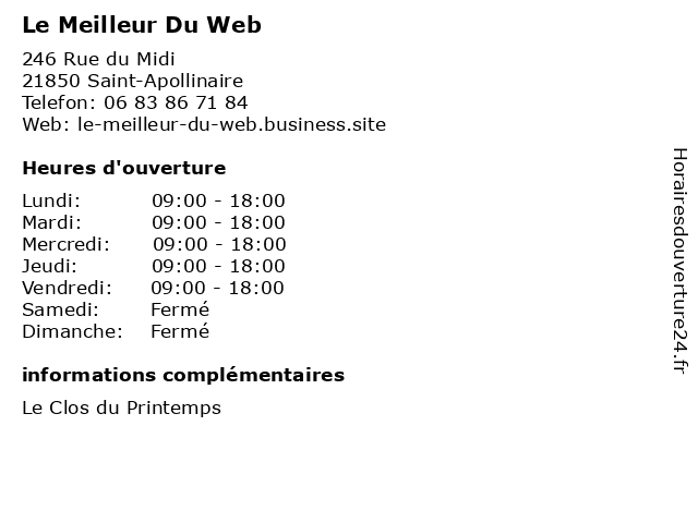 | Samedi | Fermé |