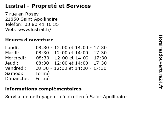 | Lundi | 08:30-12:00 et 14:00-17:30 |