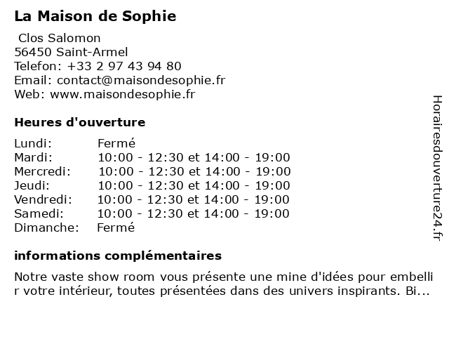 | Samedi | 10:00-12:30 et 14:00-19:00 |
