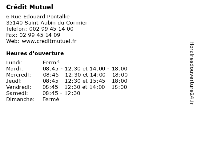 | Mardi | 08:45-12:30 et 14:00-18:00 |