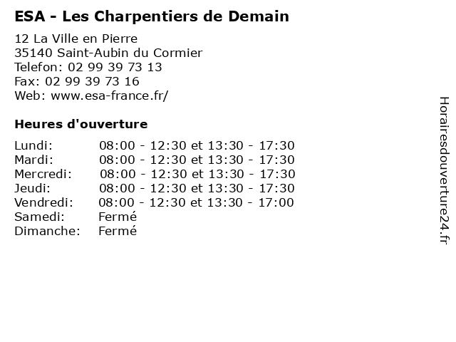 | Mercredi | 08:00-12:30 et 13:30-17:30 |