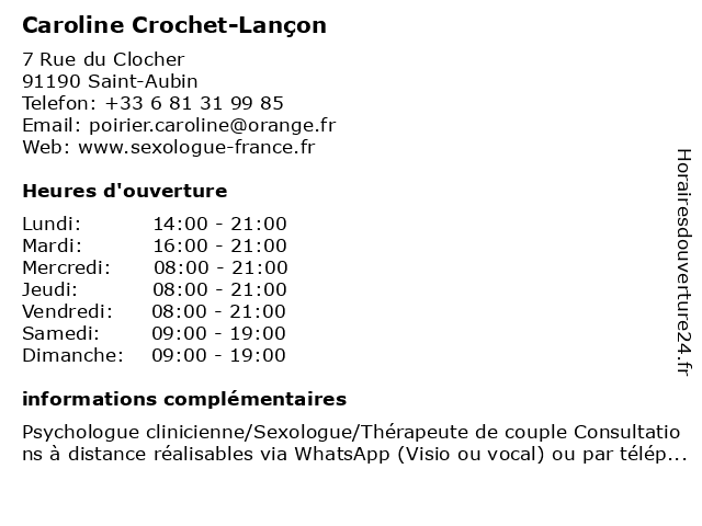 | Lundi | 14:00-21:00 |