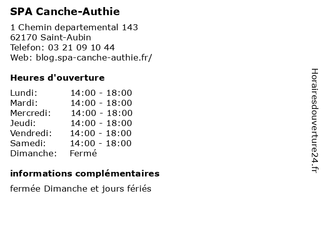 | Dimanche | Fermé |