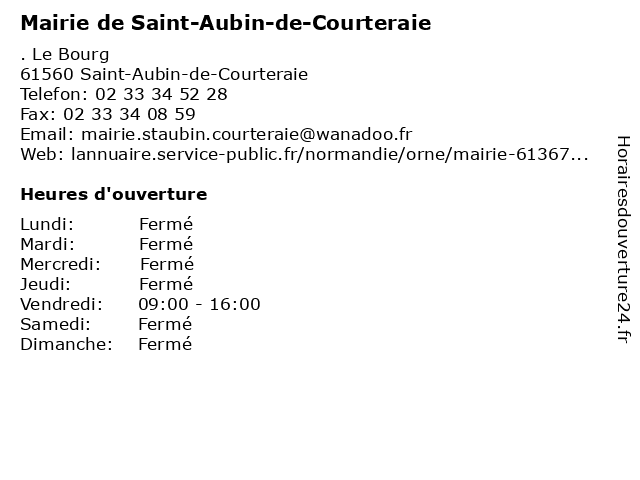 Termes de recherche pour Mairie de Saint-Aubin-de-Courteraie:de, saint, aubin, administration, mairie, assoc public, courteraie  |