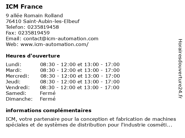 | Lundi | 08:30-12:00 et 13:00-17:00 |