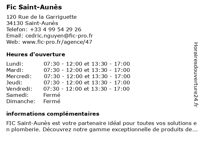 | Vendredi | 07:30-12:00 et 13:30-17:00 |