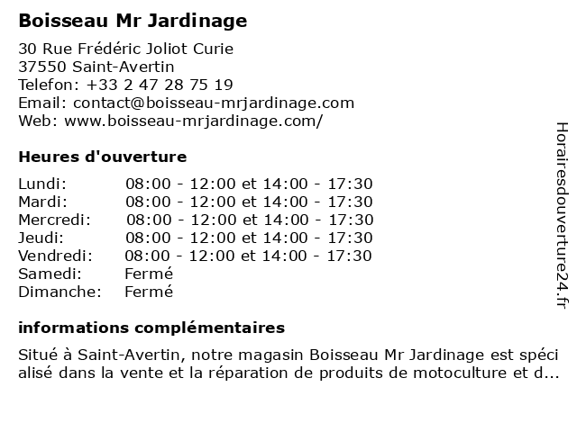 | Mardi | 08:00-12:00 et 14:00-17:30 |