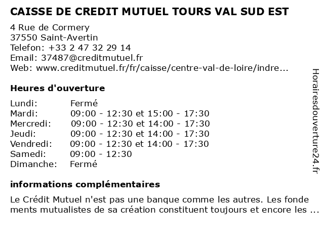 Termes de recherche pour CAISSE DE CREDIT MUTUEL TOURS VAL SUD EST:val, de, tours, crédit, est, sud, mutuel, caisse |