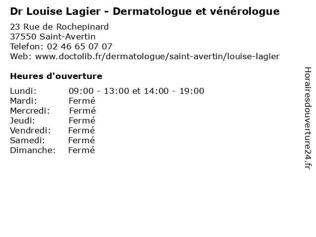 1 Dr Marine Durieux-Verde - Dermatologue et vénérologue (Distance: 0,00 km) 23 Rue de Rochepinard, 37550 Saint-Avertin boutons, dermatologue, docteur, dr, durieux, et, liason, marine, venerologue, verde, vénérologue 2 Maître Louise Thome - Avocate (Distance: 3,53 km) 4 place du Général Leclerc, 37000 Tours avocate, avocats, cabinet, conseils, contentieux, juridique, justice, litiges, louise, maître, services, thome 3 Louise Jaubert - Psychologue (Distance: 3,73 km) 43 Rue d'Entraigues, 37000 Tours folie, jaubert, louise, psychiatre, psychiatrie, psychiatrique, psychologue 4 Maître Louise Boidin - Avocate (Distance: 4,04 km) 33 Boulevard Béranger, 37000 Tours avocate, avocats, boidin, cabinet, conseils, contentieux, juridique, justice, litiges, louise, maître, services 5 Dr Jean-Paul Claudel - Dermatologue et vénérologue (Distance: 4,23 km) 49 Boulevard Béranger, 37000 Tours autre, claudel, consultation, dermatologie, dermatologue, docteur, dr, et, jean, medecins, paul, santé, vénérologie, vénérologue 6 Dr Laurent Machet - Dermatologue et vénérologue (Distance: 4,87 km) 2 Boulevard Tonnelle, 37000 Tours consultation, dermatologue, docteur, dr, et, laurent, machet, med, medecine, medical, médecin, traitement, vénérologue |