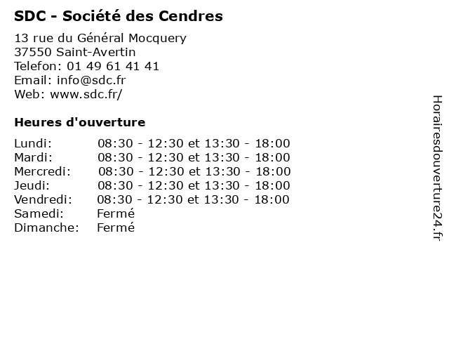 | Vendredi | 08:30-12:30 et 13:30-18:00 |