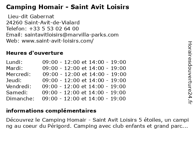| Samedi | 09:00-12:00 et 14:00-19:00 |