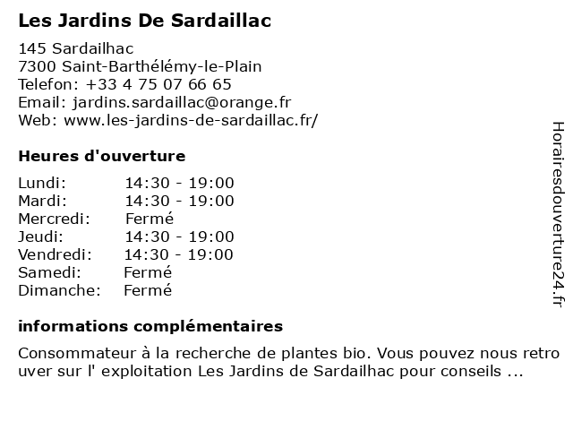 1 Les Jardins Des Lacs (Distance: 6,44 km) Route de Pierre, 07300 Tournon-sur-Rhône des, jardins, lacs, les 2 Tournaire Parcs Et Jardins (Distance: 7,09 km) 30 Impasse Louis Devise, 07300 Tournon-sur-Rhône et, jardins, parcs, tournaire 4 Les Jardins De Crussol SARL (Distance: 15,79 km) 305 Rue Claude Chappe, 07500 Guilherand-Granges crussol, de, jardins, les, sarl 5 RÉSIDENCE LES JARDINS DE L'ALLET (Distance: 16,28 km) 20 Avenue Pierre Benoît, 26500 Bourg-lès-Valence de, jardins, l'allet, les, résidence 6 Jardins d'Asie (Distance: 26,10 km) 1 Avenue Des Allobroges, 26100 Romans Sur Isere asie, jardins, restaurants  |