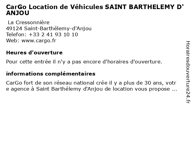 | Appeler CarGo Location de Véhicules SAINT BARTHELEMY D'ANJOU | |