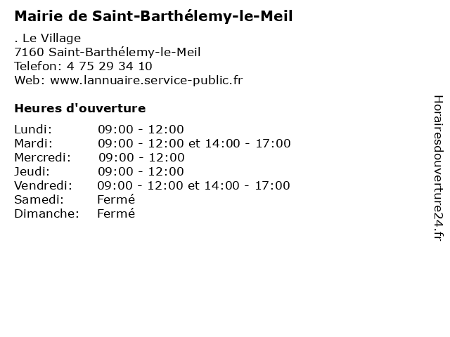 Termes de recherche pour Mairie de Saint-Barthélemy-le-Meil:le, de, saint, administration, mairie, barthelemy, assoc public, meil |