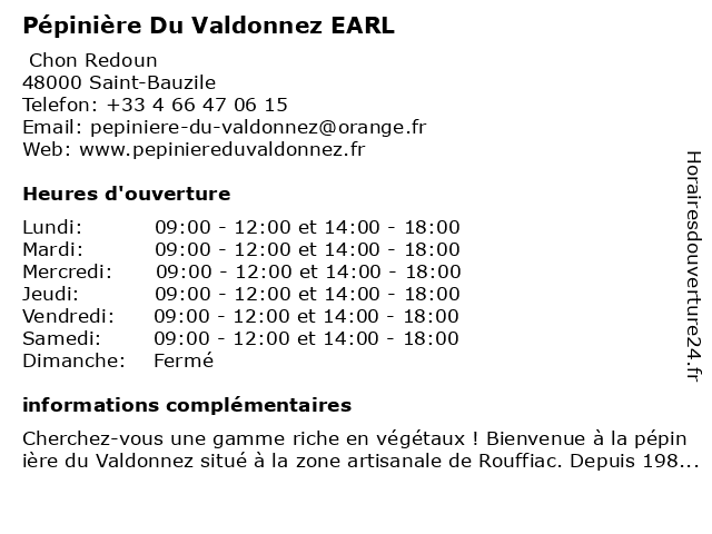 Termes de recherche pour Pépinière Du Valdonnez EARL:du, earl, pépinière, valdonnez |