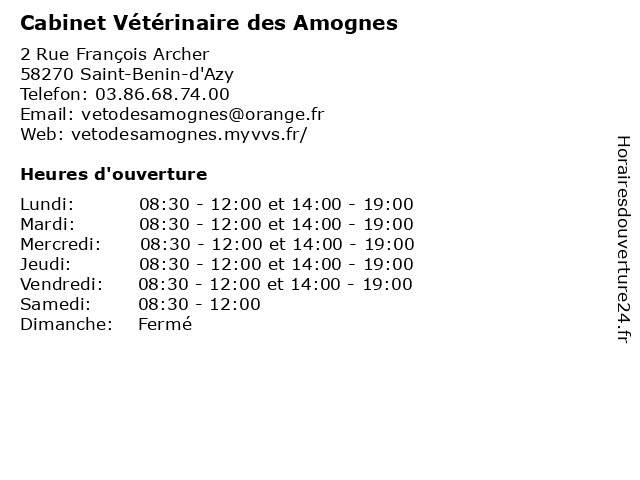 | Lundi | 08:30-12:00 et 14:00-19:00 |