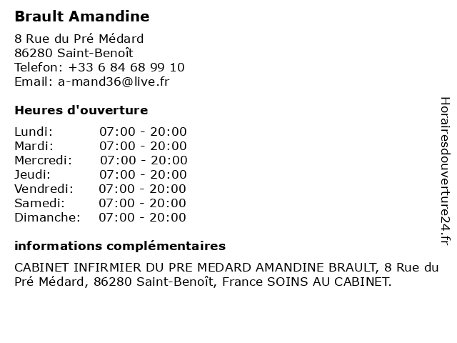 1 Dr. Rachel Brault - Rhumatologie (Distance: 0,76 km) 2 Rue de la Milétrie, 86000 Poitiers brault, docteur, dr., medecins, rachel, rhumatologie, sante 2 Dr Amandine Merrant - Médecin généraliste (Distance: 2,21 km) 38 Route de Poitiers, 86280 Saint-Benoît amandine, consultation, docteur, dr, généraliste, med, merrant, médecin, médecine, secrétariat, traitement 4 Amandine Epicerie (Distance: 2,97 km) 1 Place charles de gaulle, 86000 Poitiers amandine, epicerie, poitiers 5 Maître Amandine Frangeul - Avocate (Distance: 3,06 km) 37 Rue Gambetta, 86000 Poitiers amandine, avocat, avocate, droit, frangeul, juridictionnelle, maître, négociation 6 Amandine Thiebaut - Hypnothérapeute (Distance: 4,61 km) 2 Rue Maryse Hilsz, 86000 Poitiers amandine, hypno, hypnose, hypnothérapeute, sante, thiebaut |