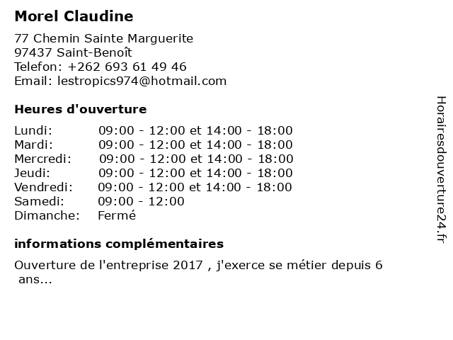 Lundi | 09:00-12:00 et 14:00-18:00 |