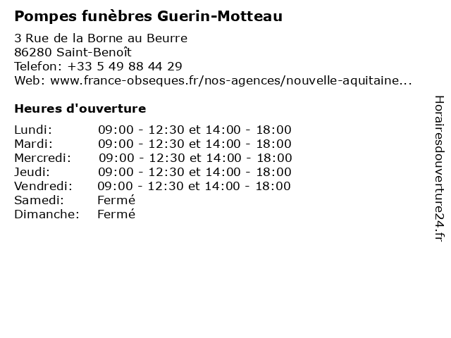 | Lundi | 09:00-12:30 et 14:00-18:00 |