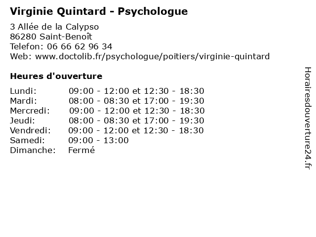 | Mercredi | 09:00-12:00 et 12:30-18:30 |