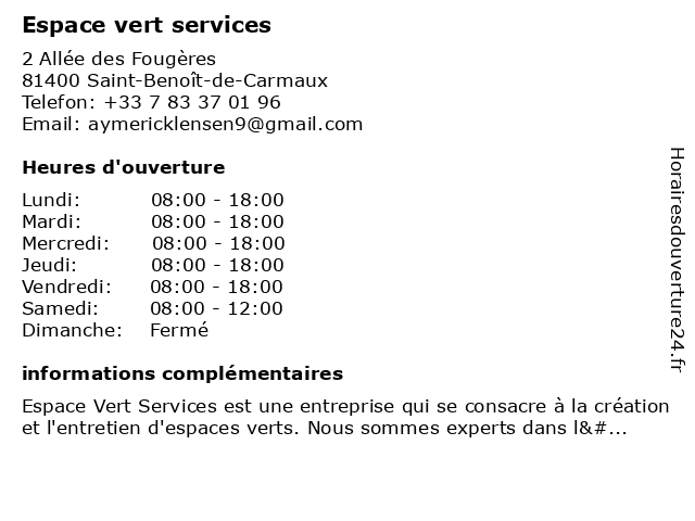 1 GAMM VERT (Distance: 1,63 km) Boulevard Augustin Malroux, 81400 Carmaux animalerie, gamm, jardin, jardinerie, mobilier de jardin, plantes, pépinière, vert 2 Gamm vert (01/11 au 31/03) (Distance: 3,74 km) . PLACE DE LA GARE, 81400 CARMAUX 01/11, 31/03, animalerie, animaux, au, gamm, horticulteur, jardin, jardinerie, vert 3 Espace Aquatique Atlantis (Eté) (Distance: 10,70 km) - Route de Cordes, 81000 ALBI albi, aquatique, atlantis, espace, eté, nautique, sportif 4 Votre Point Vert (Distance: 11,73 km) n/a Route de Carmeaux, 81000 ALBI animals, clothing, flower market, garden, garden tools, interior, pet, point, vert, votre 5 E.Leclerc Espace culturel (Distance: 14,11 km) . Route de Toulouse, 81000 Albi culturel, e.leclerc, espace, service, services, services a la personne 6 E.Leclerc Espace Culturel (Distance: 14,17 km) Z.A.C Fonlabour, 81000 Albi culturel, e.leclerc, espace, fournisseur de matériel audiovisuel, librairies, magasin de jeux vidéo, magasin de musique, matériel de photographie, matériel vidéo, services et matériel vidéo |