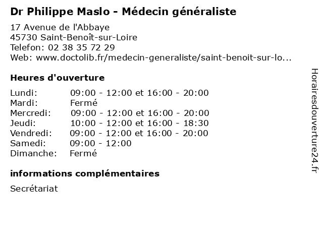 | Lundi | 09:00-12:00 et 16:00-20:00 |