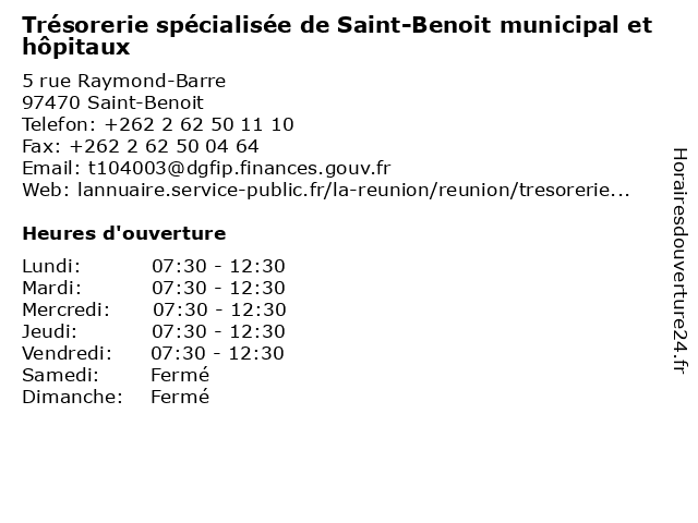 Termes de recherche pour Trésorerie spécialisée de Saint-Benoit municipal et hôpitaux:et, de, saint, trésor, benoit, municipal, public, trésorerie, hôpitaux, spécialisée, saint-benoit |