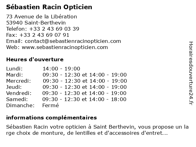 | Mercredi | 09:30-12:30 et 14:00-19:00 |
