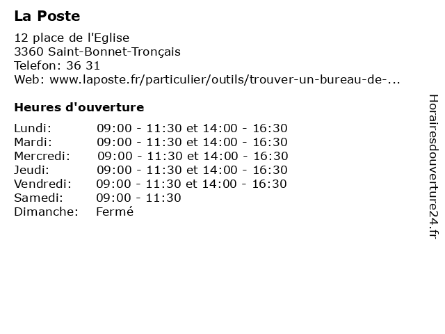 2 La Poste (Distance: 8,89 km) 25 Route Nationale, 03360 Urçay agence, assurance, banque, banque postale, bureau de poste, chronopost, colis, courrier, dps, expéditions internationales, la, point, postale, poste, relais, timbres, téléphonie, ups, western union 3 La Poste (Distance: 8,98 km) - place de la Mairie, 03360 Meaulne agence, assurance, banque, banque postale, bureau de poste, chronopost, colis, courrier, dps, expéditions internationales, la, point, postale, poste, relais, timbres, téléphonie, ups, western union 4 La Poste (Distance: 9,98 km) n/a Le Bourg, 03350 Le Brethon agence, assurance, banque, banque postale, bureau de poste, chronopost, colis, courrier, dps, expéditions internationales, la, point, postale, poste, relais, timbres, téléphonie, ups, western union 5 La Poste (Distance: 10,75 km) 23 Rue Jean Valette, 18200 Ainay-le-Vieil express chronopost, la, poste, réexpédition internationale 6 La Poste (Distance: 11,19 km) 10 route de l'Etang, 03360 Valigny agence, assurance, banque, banque postale, bureau de poste, chronopost, colis, courrier, dps, expéditions internationales, la, point, postale, poste, relais, timbres, téléphonie, ups, western union |