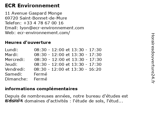 Lundi | 08:30-12:00 et 13:30-17:30 |