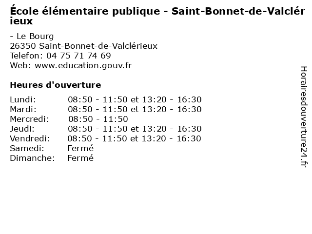 | Mardi | 08:50-11:50 et 13:20-16:30 |
