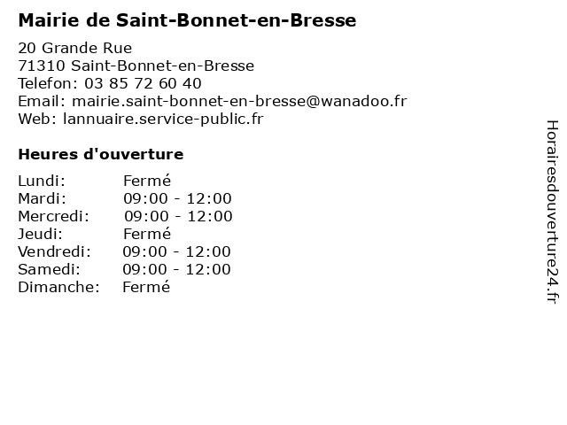 Termes de recherche pour Mairie de Saint-Bonnet-en-Bresse:en, de, bresse, saint, bonnet, administration, mairie, service public |