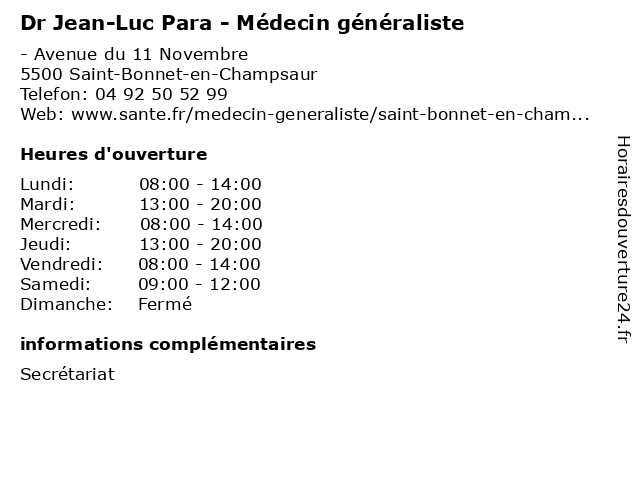 | Lundi | 08:00-14:00 |