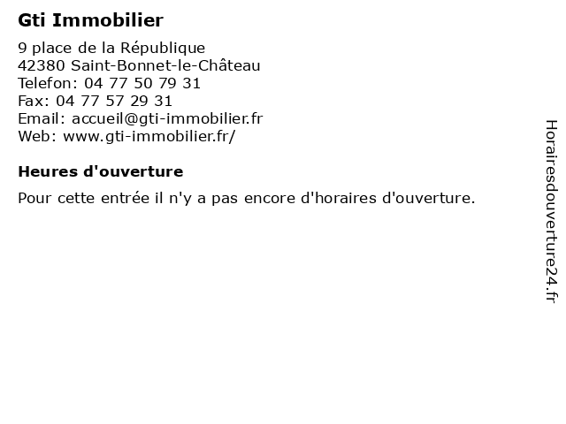 1 Gti Immobilier (Distance: 16,11 km) 44 rue Colombet Solle, 42170 Saint-Just-Saint-Rambert agence, gestion, gti, immobilier, location, transactions, vente 3 Gti Immobilier (Distance: 17,85 km) 22 rue Jean Jaurès, 42700 Firminy agence, gestion, gti, immobilier, location, transactions, vente 4 Groupe GTI Immobilier (Distance: 12,02 km) 6 avenue du Pont, 43110 Aurec-sur-Loire agence, gestion, groupe, gti, immobilier, location, transaction, vente 5 JB Transactions (Distance: 0,08 km) 6 place Grand Faubourg, 42380 Saint-Bonnet-le-Château agence, gestion, immobilier, j.b, jb, location, transactions, vente 6 GTI Immobilier (Distance: 20,57 km) 22 Boulevard Carnot, 42600 Montbrison agence, gestion, gti, immobilier, location, transactions, vente |