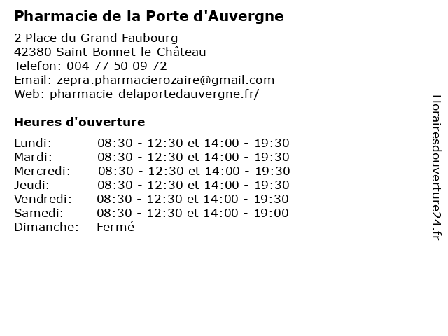 | Termes de recherche pour Pharmacie de la Porte d'Auvergne:la, du, de, pharmacie, porte, parapharmacie, nouvelle, d'auvergne, forez, st bonnet le chateau |