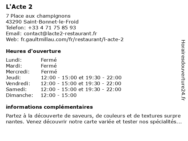 | Samedi | 12:00-15:00 et 19:30-22:00 |