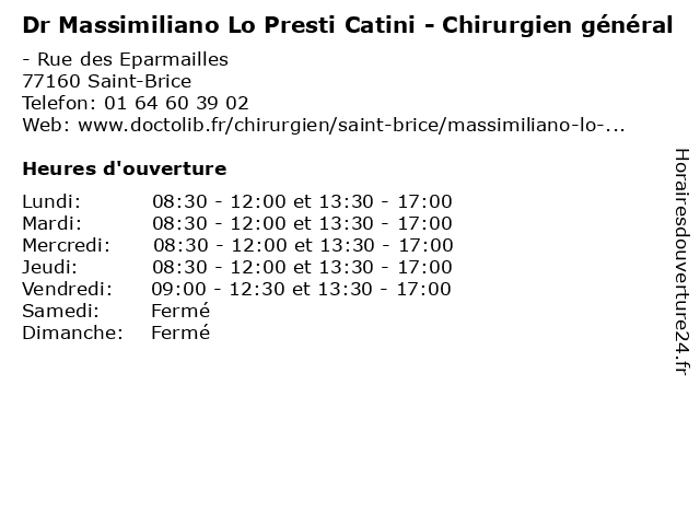 | Lundi | 08:30-12:00 et 13:30-17:00 |