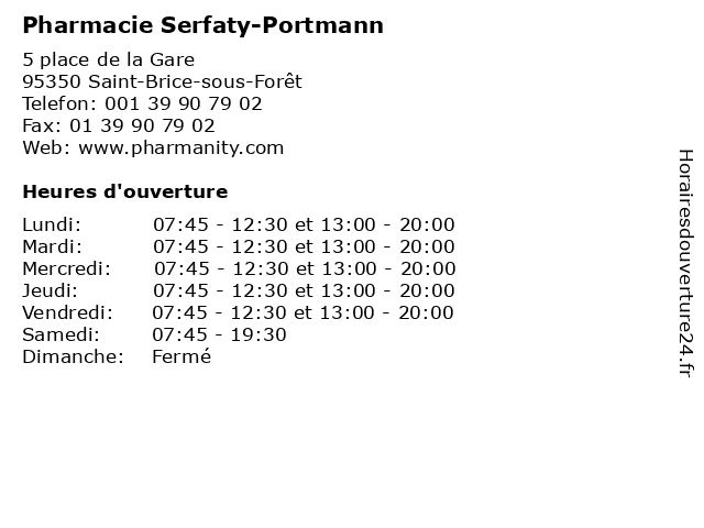| Lundi | 07:45-12:30 et 13:00-20:00 |