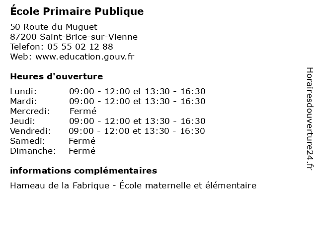 1 École Primaire Publique (Distance: 5,35 km) . Le Bourg, 87520 Javerdat cours, education, primaire, publique, services, École, école 2 École Primaire Publique (Distance: 7,43 km) 11 Rue des Écoles, 87200 Chaillac-sur-Vienne cours, education, primaire, publique, services, École, école 3 École Primaire Publique (Distance: 8,45 km) 17 Rue Saint-Maur des Fossés, 87520 Oradour-sur-Glane cours, education, primaire, publique, services, École, école 4 École Primaire Publique (Distance: 10,89 km) 1 Rue Jean Jaurès, 87720 Saillat-sur-Vienne cours, education, primaire, publique, services, École, école 5 École Primaire Publique (Distance: 13,42 km) 9 Rue Jules Ferry, 87310 Cognac-la-Forêt cours, education, primaire, publique, services, École, école 6 École Primaire Publique (Distance: 13,65 km) 1 Allée des Jardins, 87330 Nouic cours, education, primaire, publique, services, École, école |
