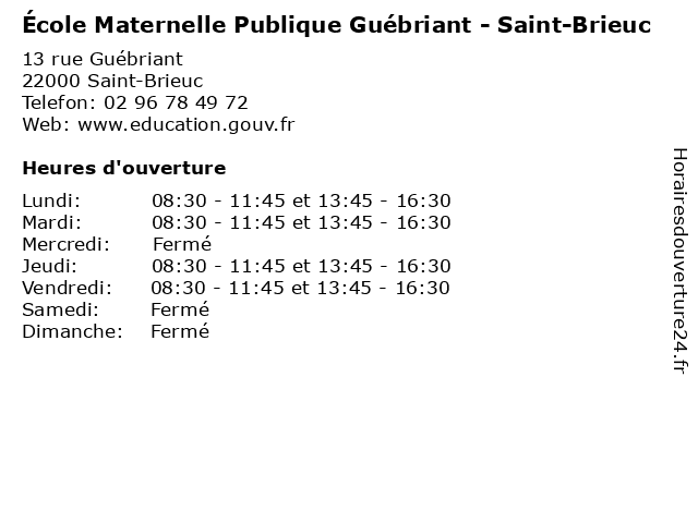 | Mardi | 08:30-11:45 et 13:45-16:30 |