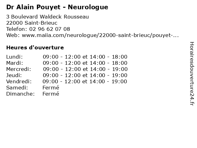 | Mercredi | 09:00-12:00 et 14:00-19:00 |