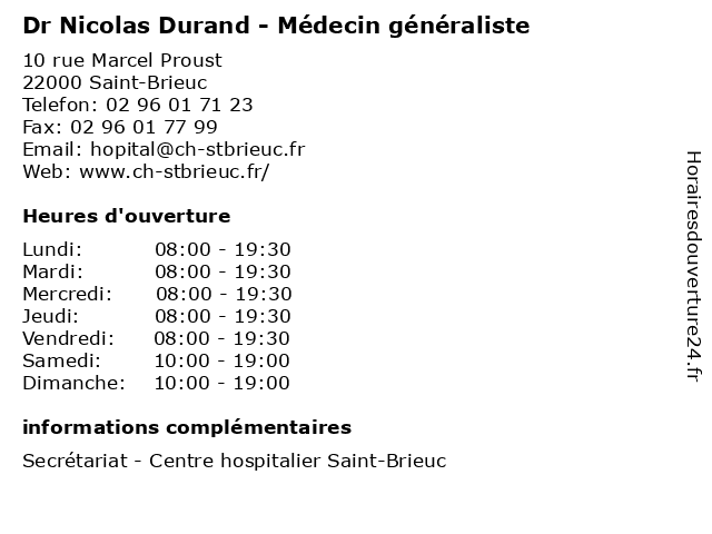 | Mercredi | 08:00-19:30 |
