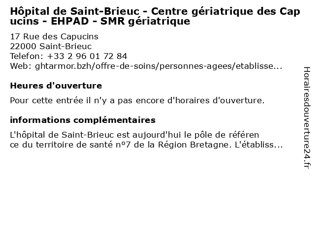| Appeler Hôpital de Saint-Brieuc - Centre gériatrique des Capucins - EHPAD - SMR gériatrique | |