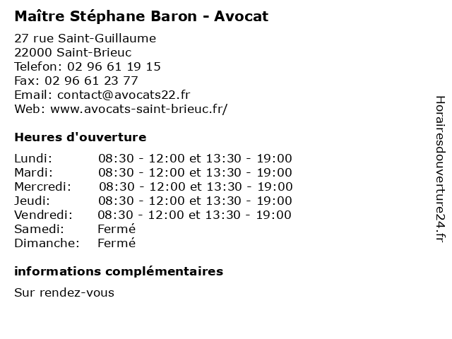 | Lundi | 08:30-12:00 et 13:30-19:00 |