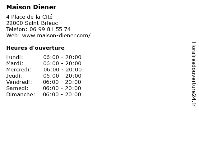 | Lundi | 06:00-20:00 |