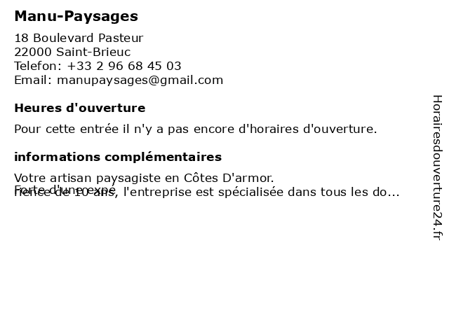 1 Pépinières Corbel et Paysages (Distance: 9,34 km) La Ville Laurent, 22170 Plélo corbel, et, paysages, pépinières 2 Le Vaillant Paysages (Distance: 15,15 km) 1 Rue de l'Europe, 22680 Binic-Étables-sur-Mer le, paysages, vaillant 5 HEOL Paysages/HEOL services (Distance: 46,13 km) Rue de Coutelouche, 22650 Beaussais-sur-Mer heol, paysages/heol, services 6 |