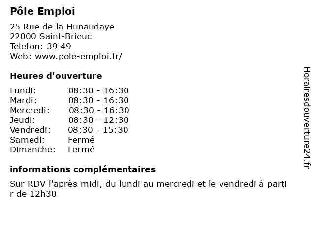 | 1 Pôle Emploi (Distance: 4,40 km) 3 Rue Jean Grenier, 22000 Saint-Brieuc administration, agence, candidats, emploi, employeurs, offres, pole, public, publique, pôle, recherche, service, travail 2 Pôle supérieur lycée Saint-Brieuc (Distance: 1,90 km) 47 Boulevard Laennec, 22000 Saint-Brieuc brieuc, lycée, pôle, saint, supérieur 3 Direction Départementale de l'Emploi du Travail et des Solidarités DDETS (Distance: 2,45 km) 1 Rue du Parc, 22000 Saint-Brieuc ddets, de, des, direction, du, départementale, et, l'emploi, solidarités, travail 4 Servagroupe Emploi (Distance: 3,09 km) 29 boulevard Clémenceau, 22000 Saint-Brieuc agence, cdd, cdi, emploi, formation, intérim, servagroupe, travail 5 Partnaire - Agence d'Emploi (Distance: 3,11 km) 6 Rue du Combat des Trente, 22000 Saint-Brieuc agence, d'emploi, emploi, interim, partnaire, recrutement, travail temporaire 6 Coopératives d'Activités et d'Emploi des Côtes-d'Armor (CAE 22) (Distance: 3,62 km) 2 Rue de la Croix Lormel, 22190 Plérin 22, activité, activités, cae, coopératif, coopératives, côtes, d'activités, d'armor, d'emploi, des, développe, environnement, et, solidaire, sécurisant |